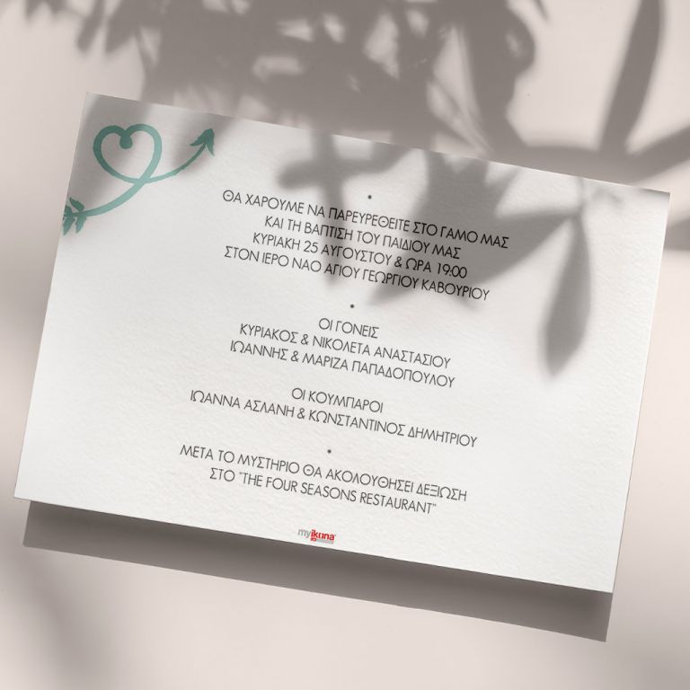 Αποκτήστε τα προσκλητήρια γάμου με σχέδιο Minimal Elegance. Οι πελάτες μας τα ξεχωρίζουν για το υψηλής ποιότητας ιταλικό χαρτί και την εκτύπωση υψηλής ευκρίνειας Myikona High Definition. Διαθέσιμα σε διαφορετικές διαστάσεις.