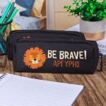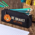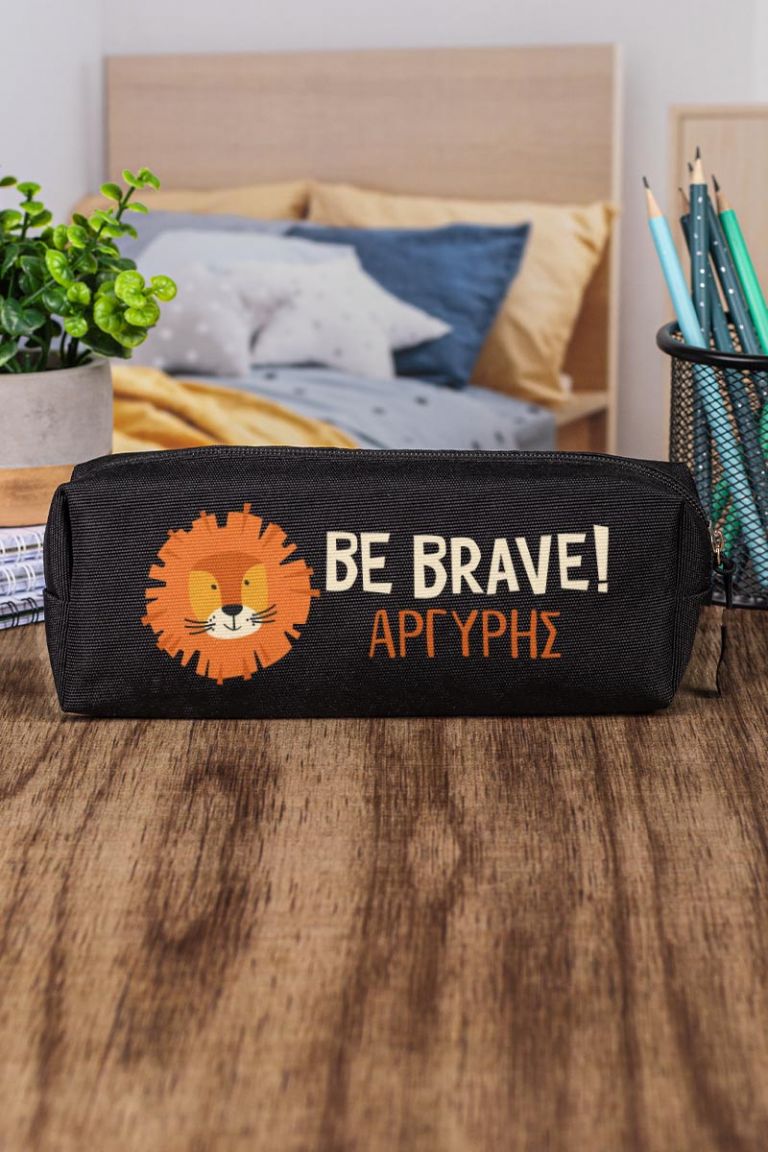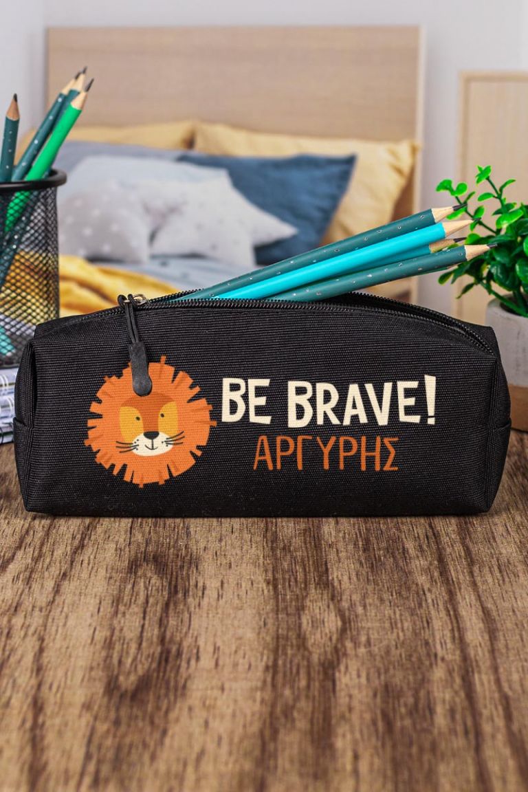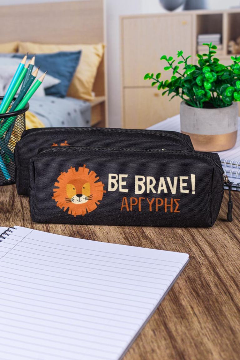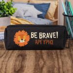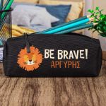 Σχολική Κασετίνα με Όνομα, σε Μαύρο Χρώμα & Σχέδιο Be Brave