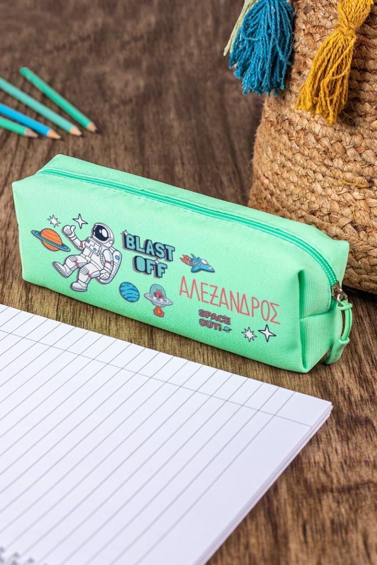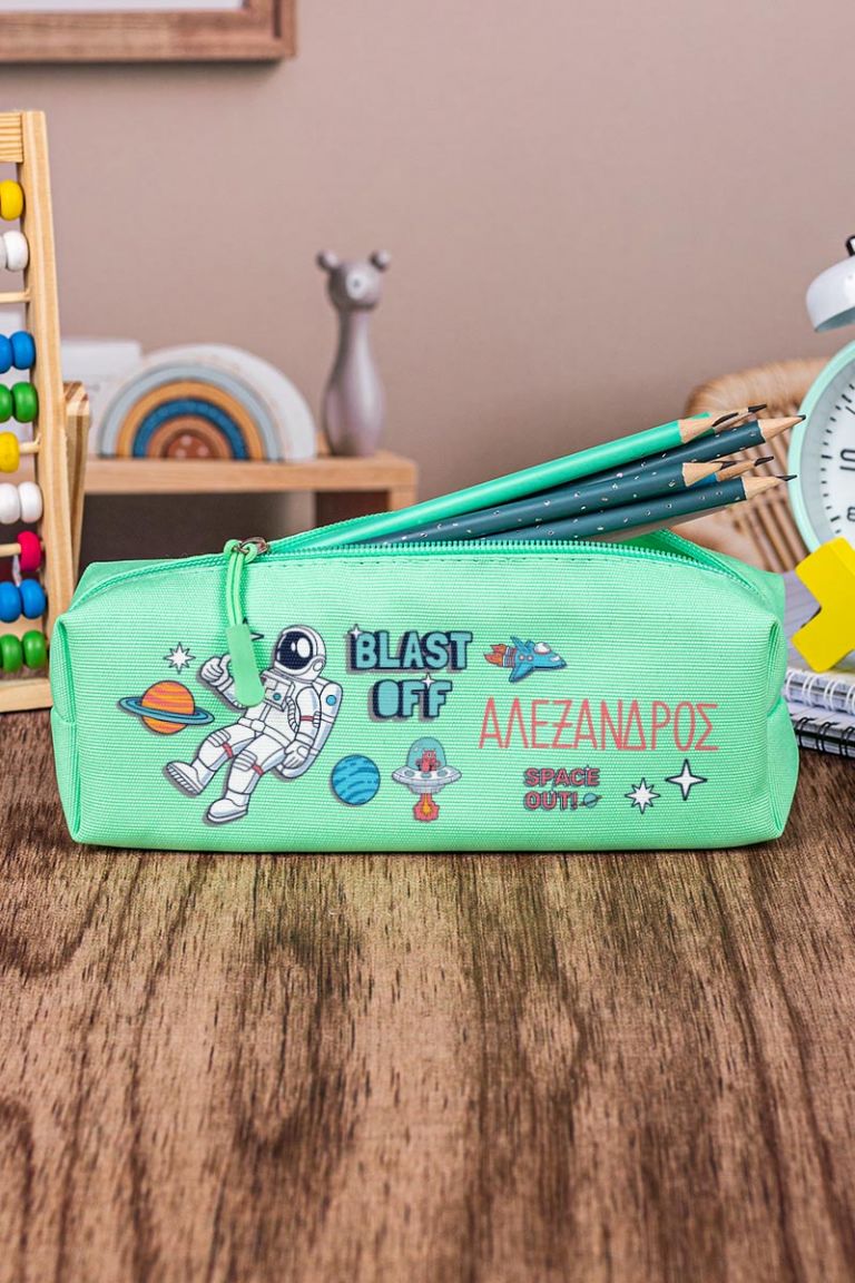 Σχολική Κασετίνα με Όνομα, σε Πετρόλ Χρώμα & Σχέδιο Blast Off