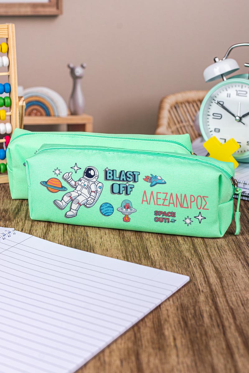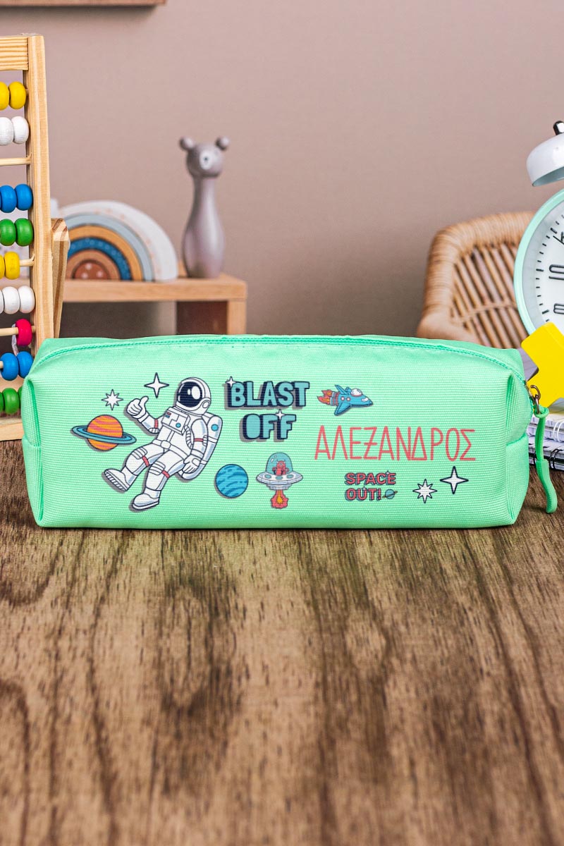 Σχολική Κασετίνα με Όνομα, σε Πετρόλ Χρώμα & Σχέδιο Blast Off