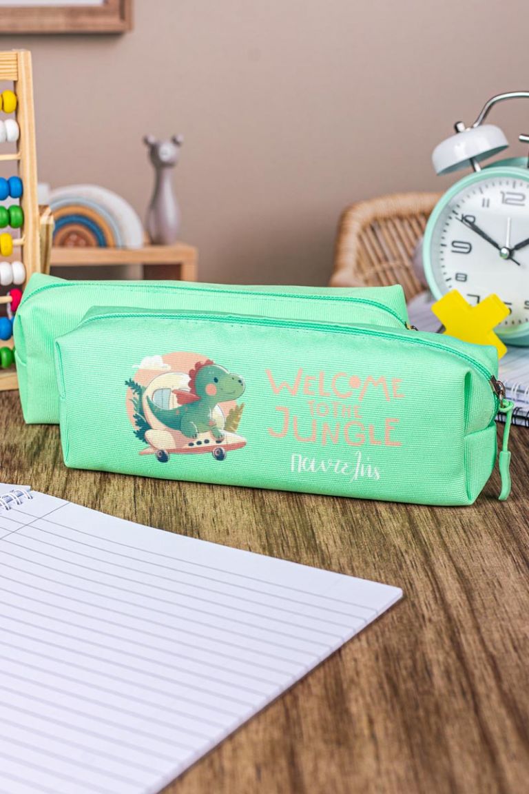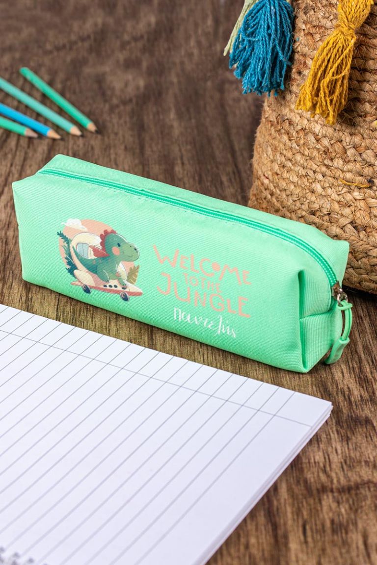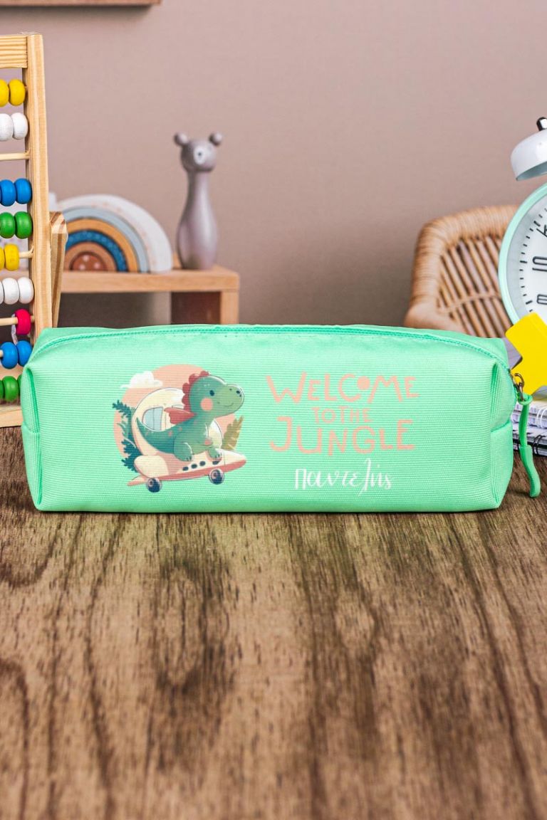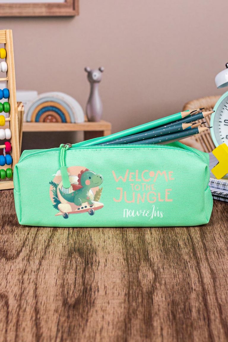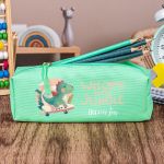 Σχολική Κασετίνα με Όνομα, σε Πετρόλ Χρώμα & Σχέδιο Cute Dino