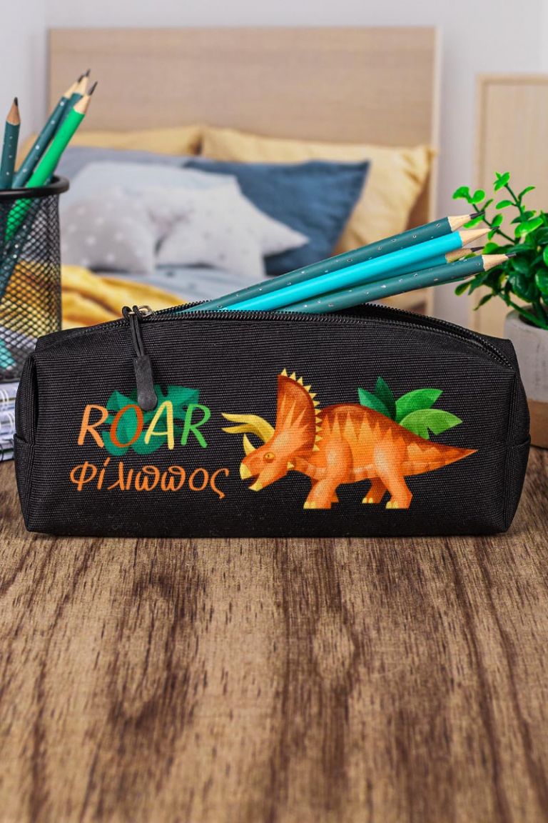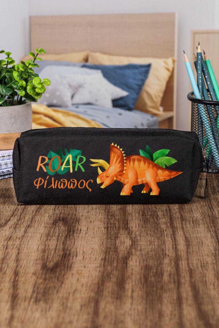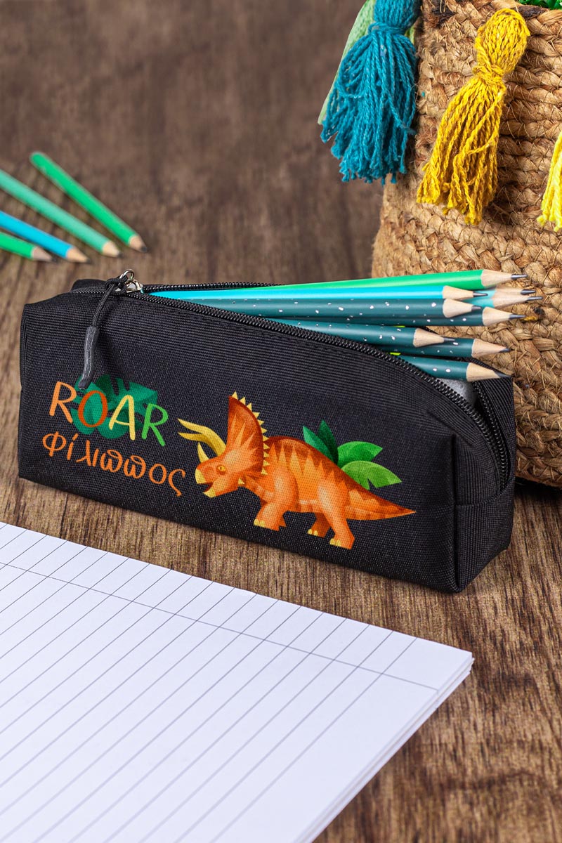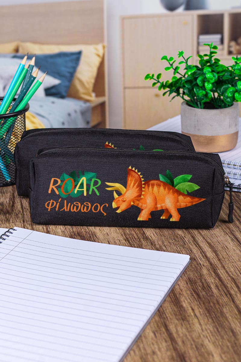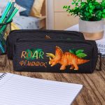 Σχολική Κασετίνα με Όνομα, σε Μαύρο Χρώμα & Σχέδιο Dino Roar