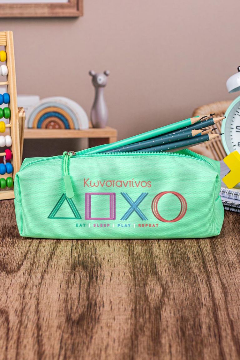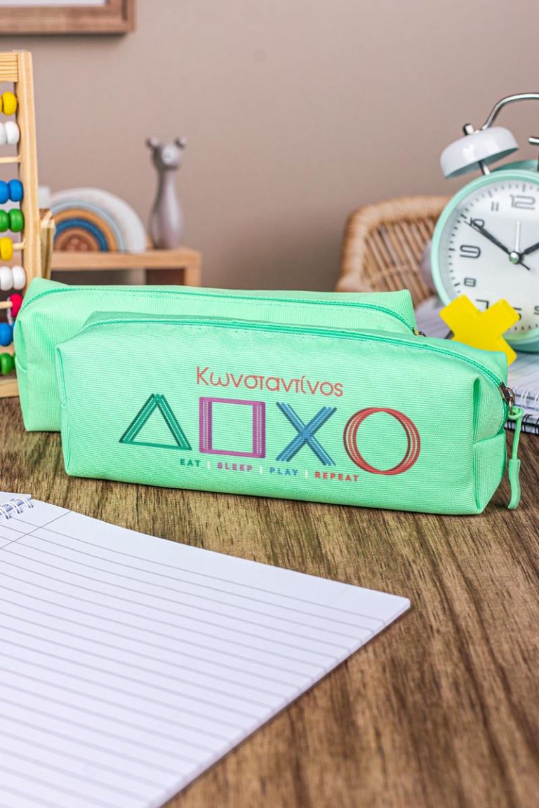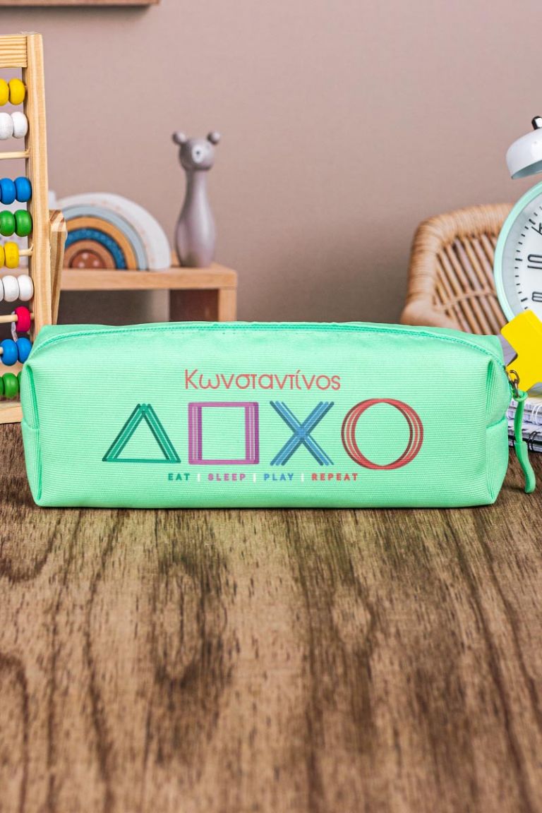 Σχολική Κασετίνα με Όνομα, σε Πετρόλ Χρώμα & Σχέδιο Eat Play Sleep