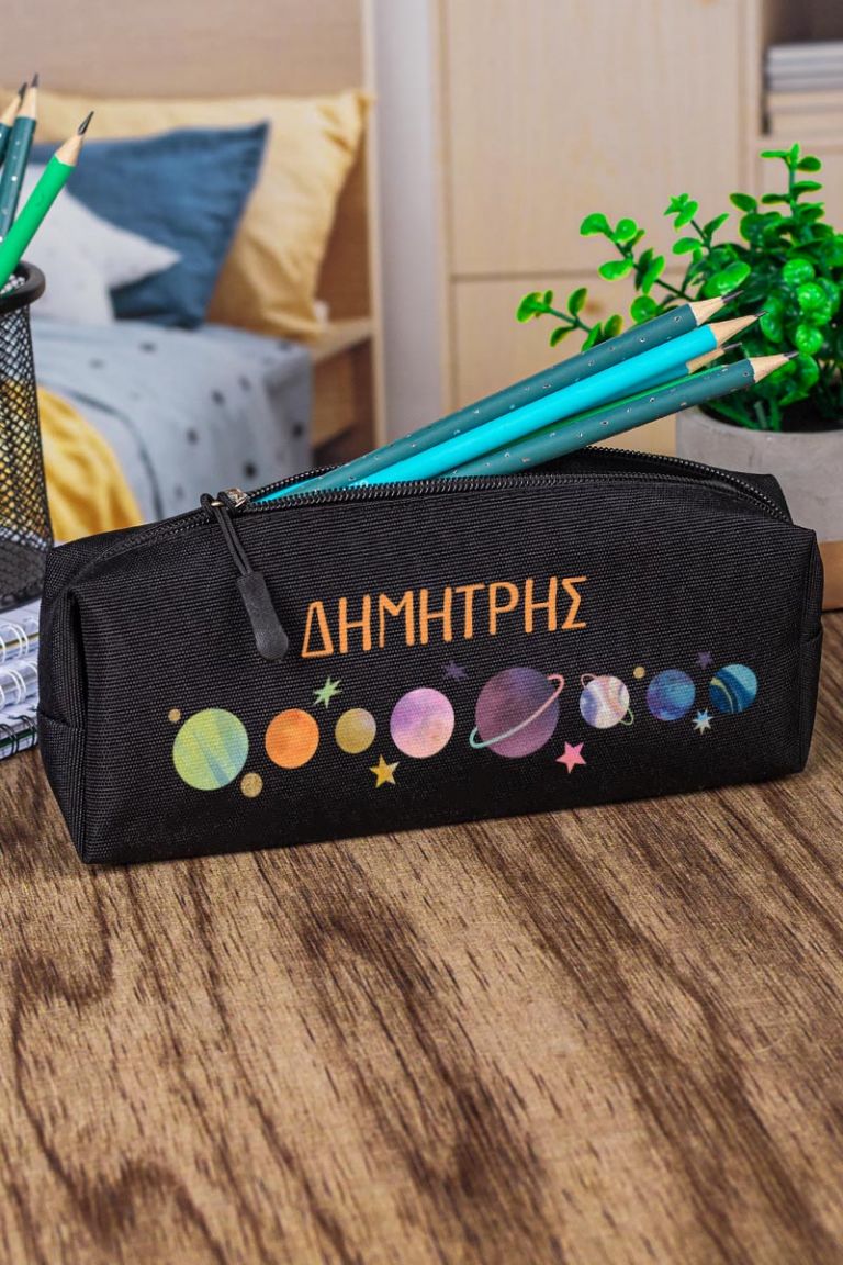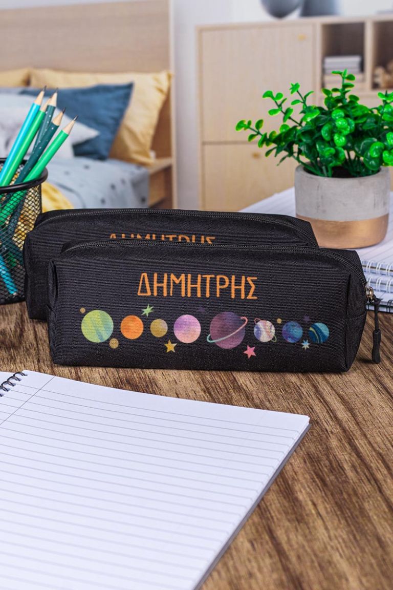 Σχολική Κασετίνα με Όνομα, σε Μαύρο Χρώμα & Σχέδιο Planets