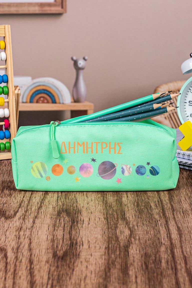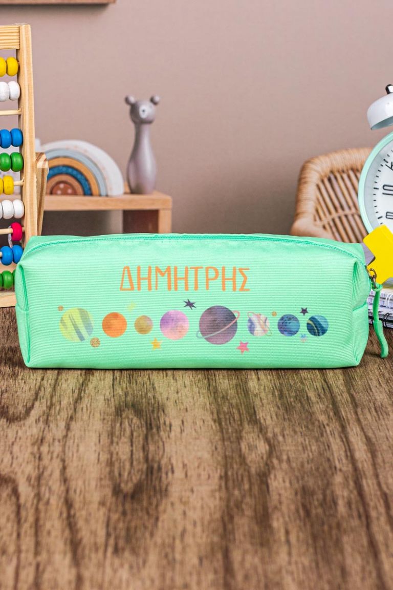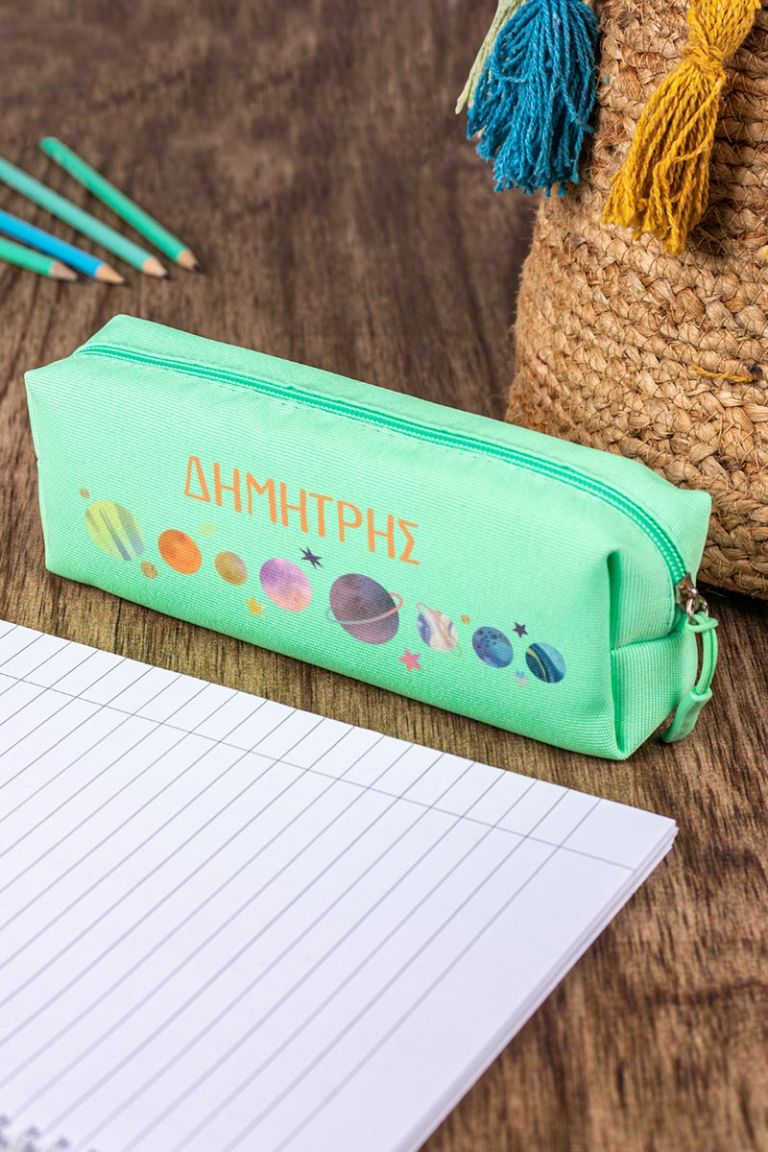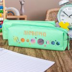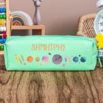 Σχολική Κασετίνα με Όνομα, σε Πετρόλ Χρώμα & Σχέδιο Planets