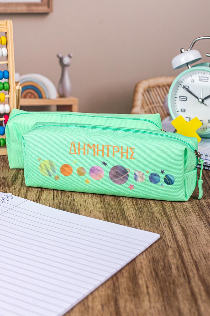 Σχολική Κασετίνα με Όνομα, σε Πετρόλ Χρώμα & Σχέδιο Planets