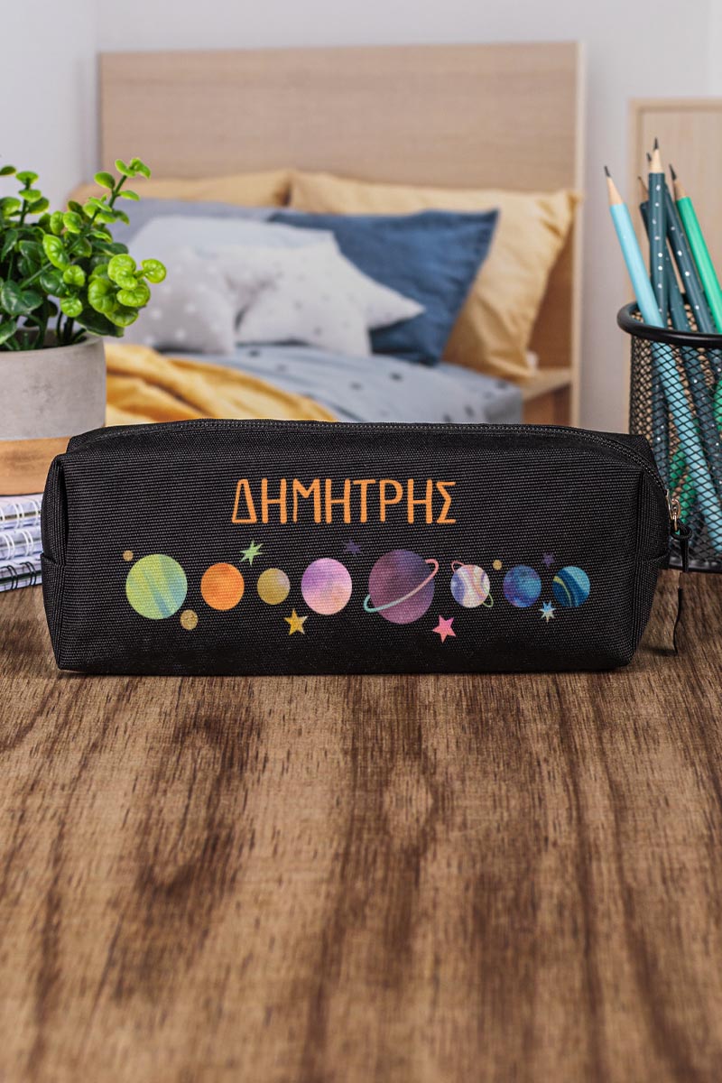 Σχολική Κασετίνα με Όνομα, σε Μαύρο Χρώμα & Σχέδιο Planets