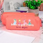 Σχολική Κασετίνα με Όνομα, σε Κοραλί Χρώμα & Σχέδιο Dancers