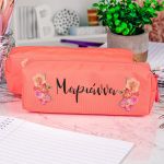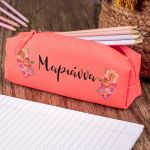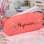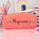 Σχολική Κασετίνα με Όνομα, σε Κοραλί Χρώμα & Σχέδιο Floral