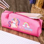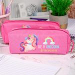 Σχολική Κασετίνα με Όνομα, σε Φούξια Χρώμα & Σχέδιο Unicorn