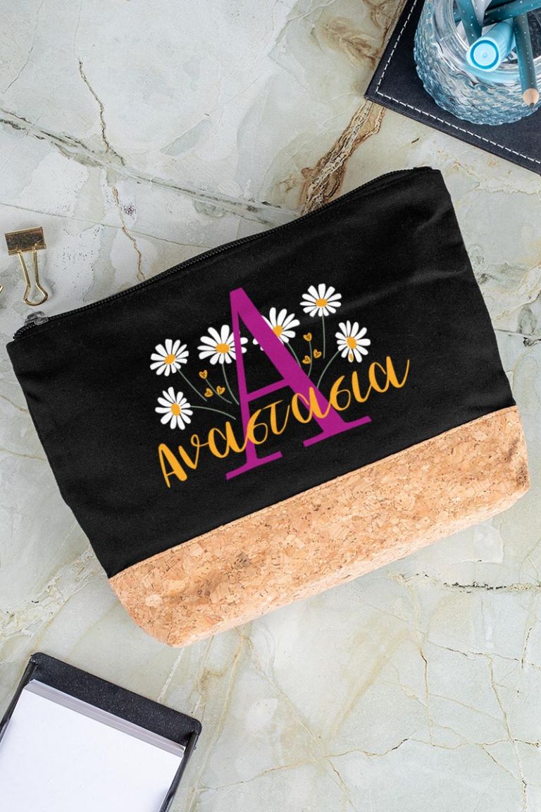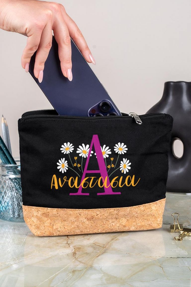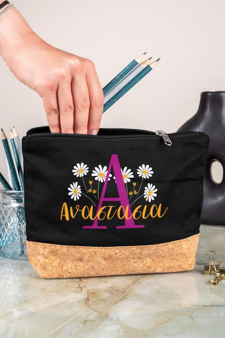 Κασετίνα – Τσαντάκι με Όνομα & Μεγάλη Χωρητικότητα, Flower Monogram