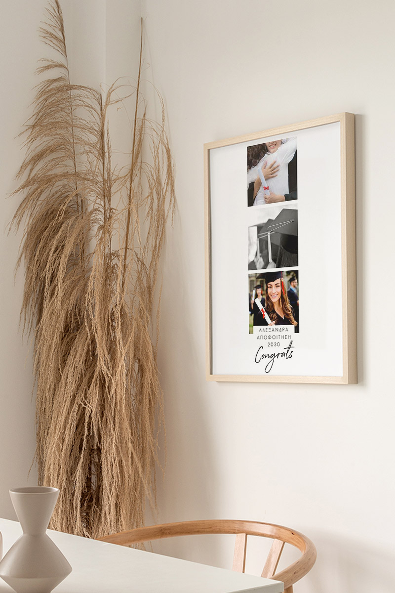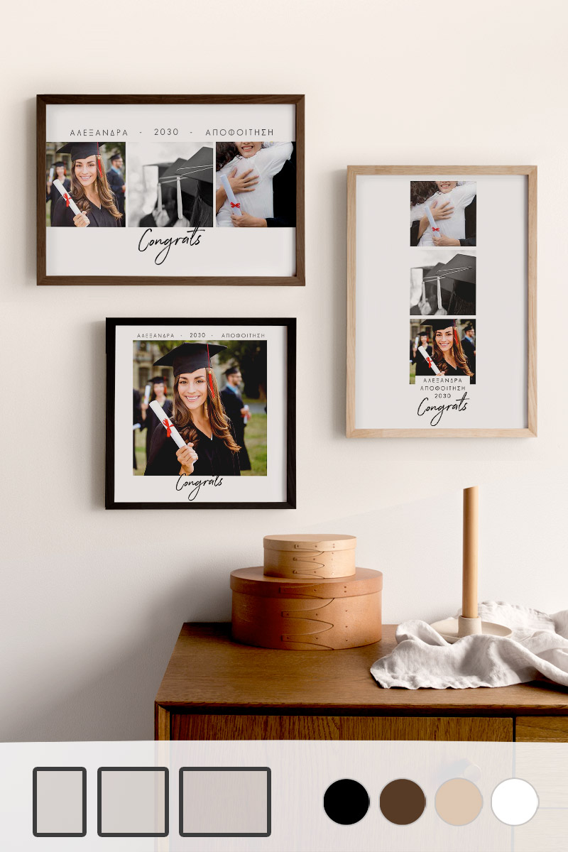Κάνουμε πιο εύκολο από ποτέ τον τρόπο με τον οποίο μπορείτε να δημιουργήσετε online τα δικά σας έργα τέχνης. Προσθέστε στις κορνίζες σας μονογράμματα, κείμενα, λεζάντες και πολλά άλλα. Σε λίγα λεπτά, μπορείτε να παραγγείλετε ένα έργο τέχνης που θα μετατρέψει έναν συνηθισμένο τοίχο στο σημείο εστίασης οποιουδήποτε δωματίου. Μπορείτε να δημιουργήσετε κορνίζες με τις καθημερινές σας στιγμές, το Γάμο σας, τη Βάπτιση του παιδιού σας, τα ταξίδια σας, τις διακοπές σας, τις σημαντικές στιγμές σας και πολλά άλλα.