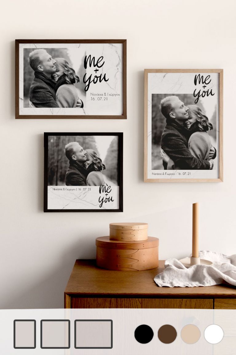 Κάνουμε πιο εύκολο από ποτέ τον τρόπο με τον οποίο μπορείτε να δημιουργήσετε online τα δικά σας έργα τέχνης. Προσθέστε στις κορνίζες σας μονογράμματα, κείμενα, λεζάντες και πολλά άλλα. Σε λίγα λεπτά, μπορείτε να παραγγείλετε ένα έργο τέχνης που θα μετατρέψει έναν συνηθισμένο τοίχο στο σημείο εστίασης οποιουδήποτε δωματίου. Μπορείτε να δημιουργήσετε κορνίζες με τις καθημερινές σας στιγμές, το Γάμο σας, τη Βάπτιση του παιδιού σας, τα ταξίδια σας, τις διακοπές σας, τις σημαντικές στιγμές σας και πολλά άλλα.