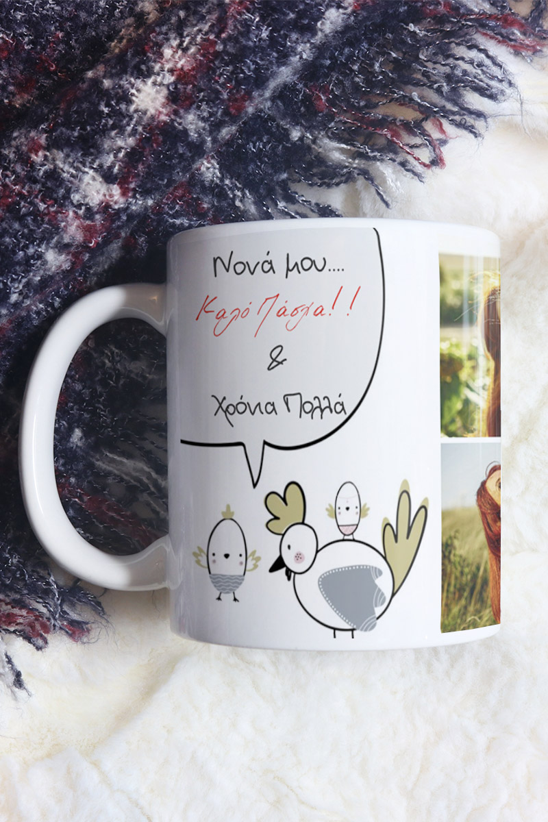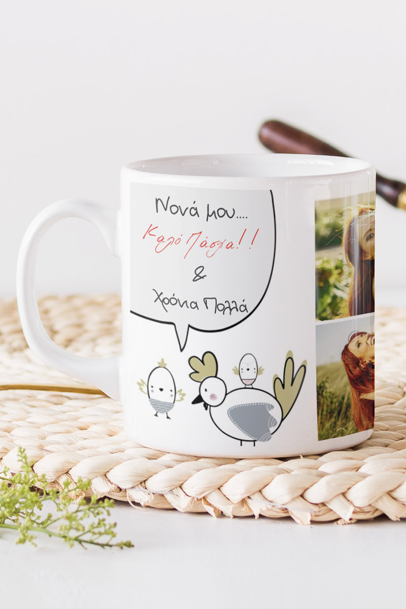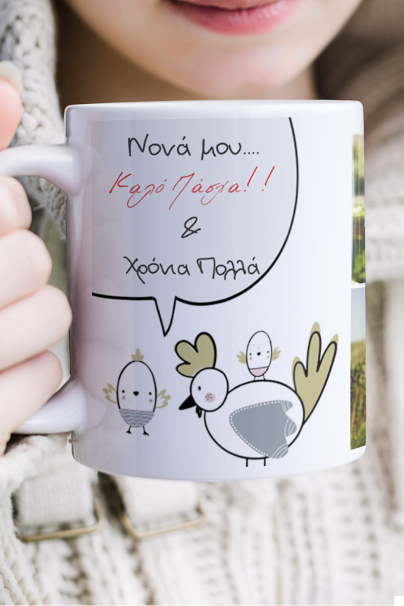 Εάν ψάχνετε ένα μοναδικό πασχαλινό δώρο, για την νονά , τον νονό , την θεία , τον θείο , την γιαγιά ή τον παππού  δημιουργήστε και χαρίστε του μία προσωποποιημένη κούπα & λάβετε πίσω τον ενθουσιασμό και την αγάπη του! Όποιος κι αν είναι ο αποδέκτης θα λατρέψει την ιδέα του ότι δημιουργήσατε κάτι μοναδικό, αποκλειστικά γι΄ αυτόν !