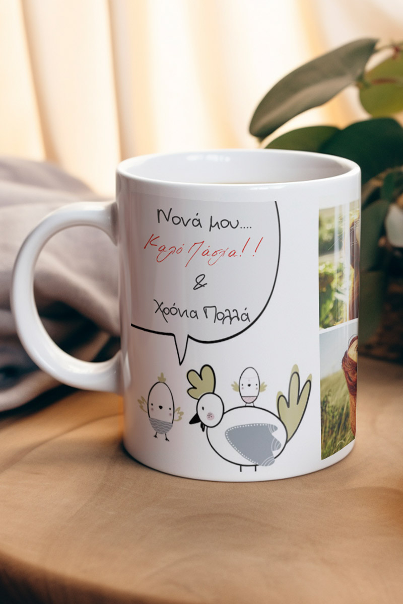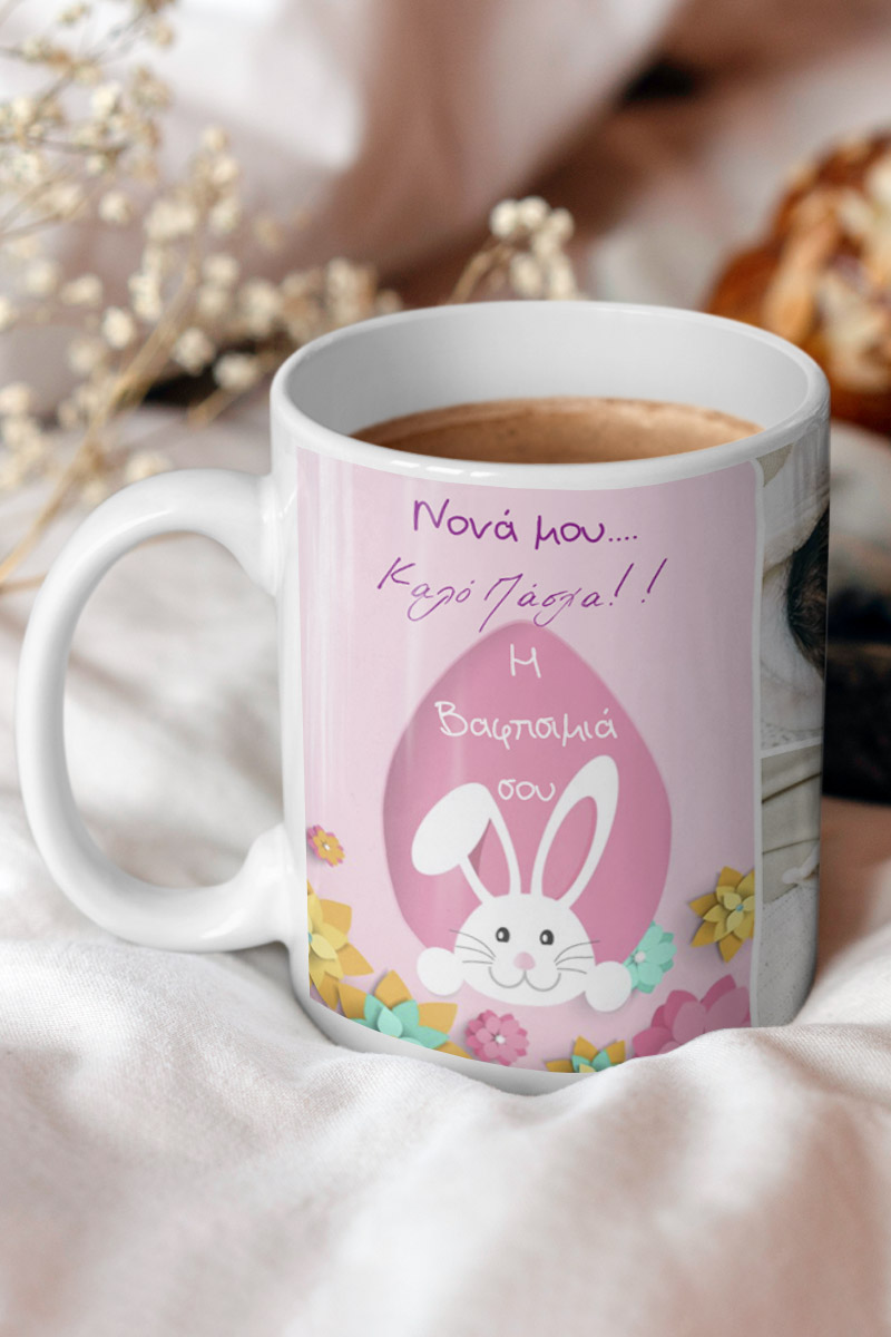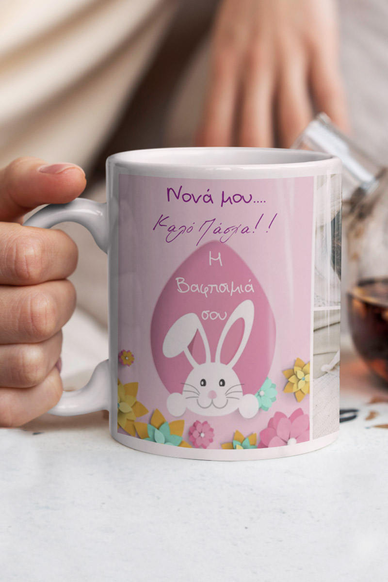 Εάν ψάχνετε ένα μοναδικό πασχαλινό δώρο, για την νονά , τον νονό , την θεία , τον θείο , την γιαγιά ή τον παππού  δημιουργήστε και χαρίστε του μία προσωποποιημένη κούπα & λάβετε πίσω τον ενθουσιασμό και την αγάπη του! Όποιος κι αν είναι ο αποδέκτης θα λατρέψει την ιδέα του ότι δημιουργήσατε κάτι μοναδικό, αποκλειστικά γι΄ αυτόν !