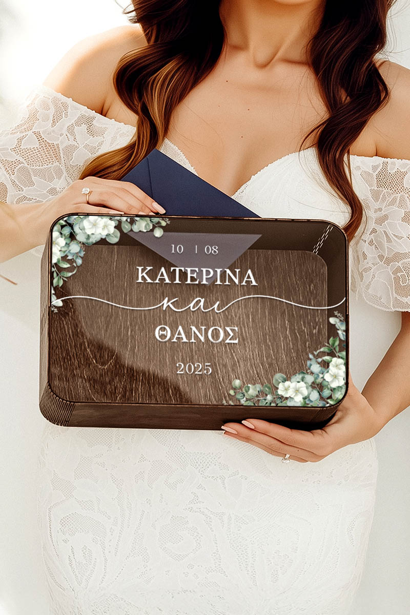 Κουτί Γάμου από Ξύλο Ορθογώνιο με Ονόματα και Ημερομηνία