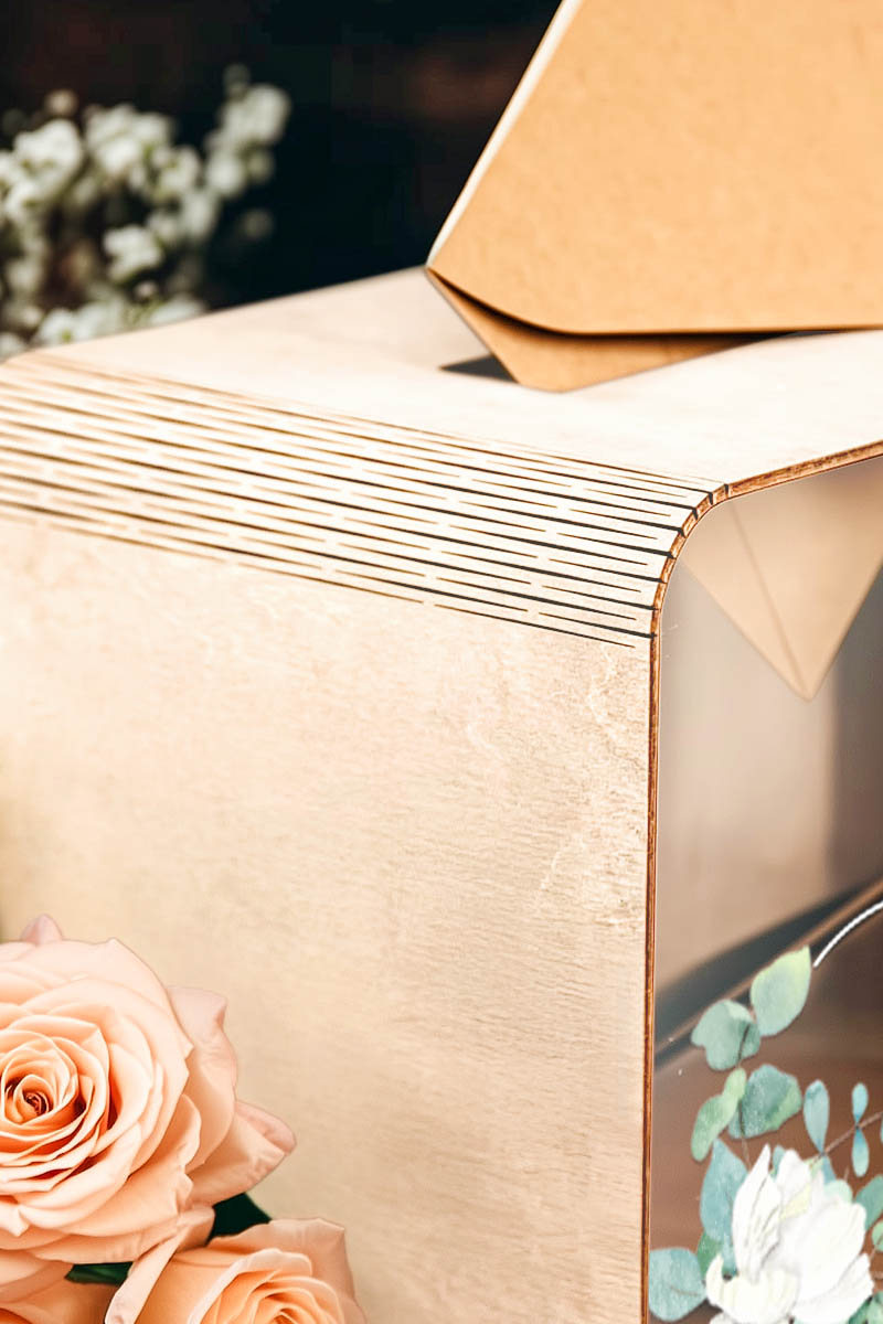 Το Κουτί Ευχών Γάμου αποτελεί μια εκλεπτυσμένη πρόταση για κάθε ζευγάρι που αναζητά έναν ξεχωριστό τρόπο να φυλάξει τις ευχές των καλεσμένων του. Κατασκευασμένο από premium κόντρα πλακέ, το κουτί λειτουργεί όπως ένας κουμπαράς, όπου οι καλεσμένοι ρίχνουν φακέλους με τις ευχές τους η τον φάκελο με το δώρο τους.