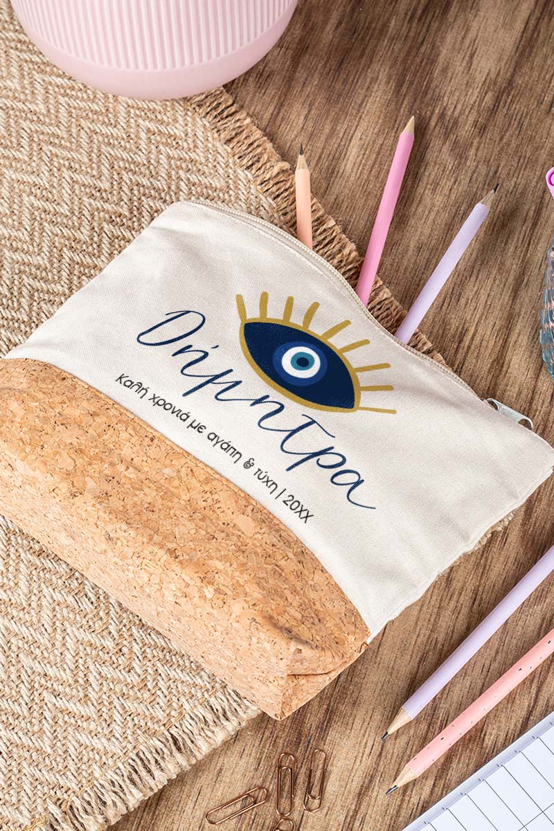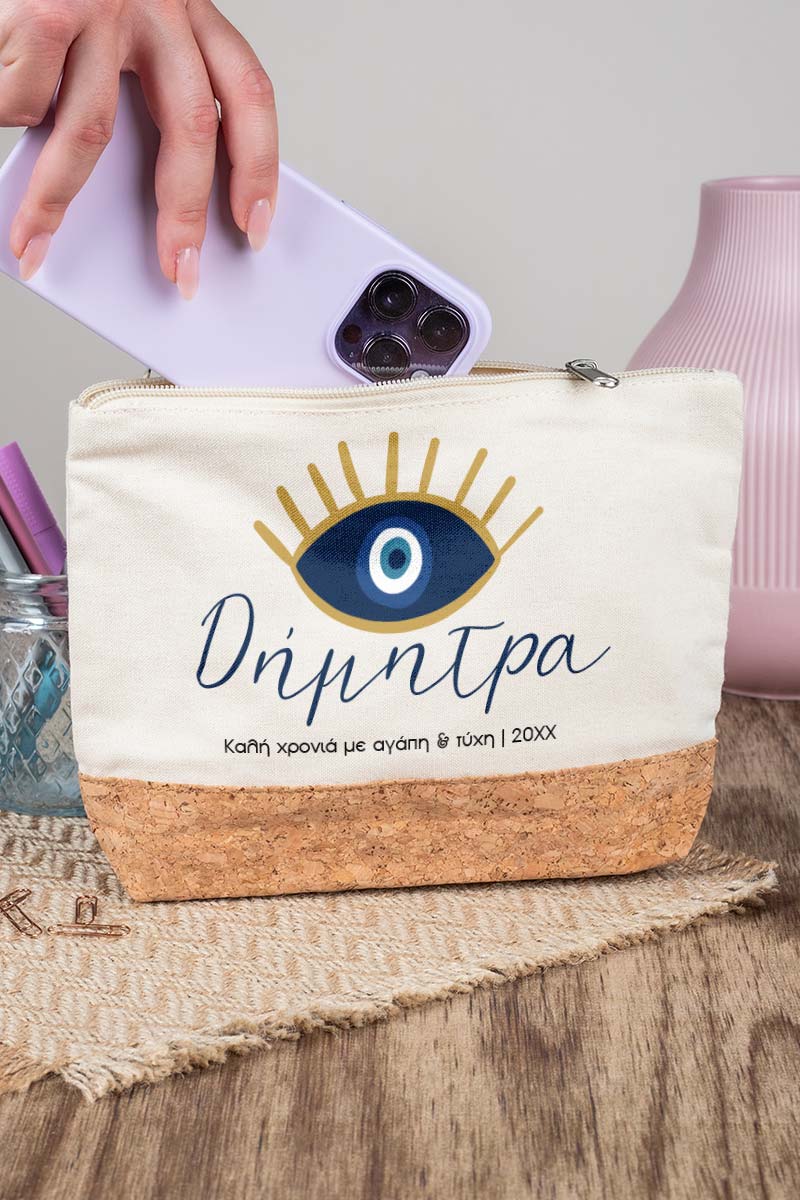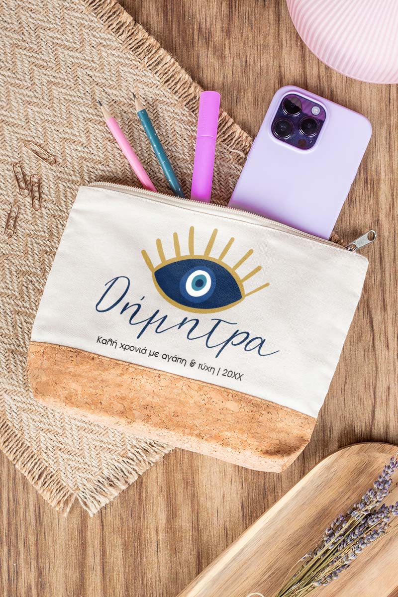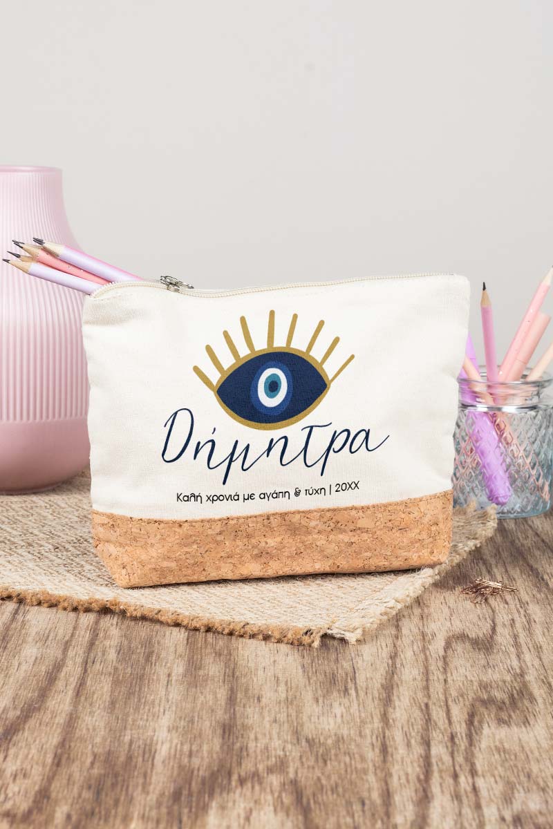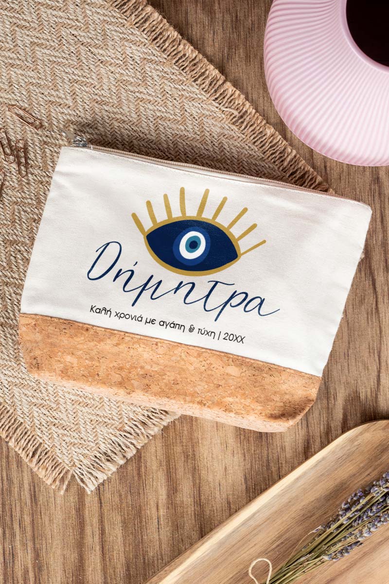 Πρακτικό Εκρού Τσαντάκι & Νεσεσέρ με Φελλό και Σχέδιο Eye