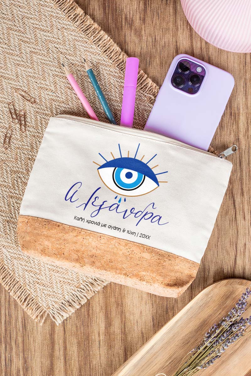 Είναι το τέλειο αξεσουάρ για την οργάνωση των καλλυντικών και άλλων καθημερινών αντικειμένων. Είναι σχεδιασμένο με πρακτικότητα και στυλ, προσφέροντας άνεση και ευκολία στις μετακινήσεις σας. Το τσαντάκι αυτό δεν είναι μόνο χρήσιμο, αλλά και μοναδικό, καθώς μπορεί να προσωποποιηθεί με ονόματα ή αφιερώσεις, προσδίδοντας μια προσωπική πινελιά.
