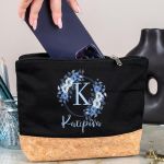 Μεγάλο Πρακτικό Μαύρο Τσαντάκι & Νεσεσέρ με Φελλό, Blue Petal