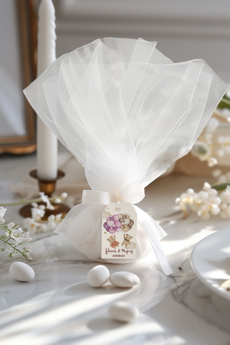 0.59€ – 1.49€Μοντέρνες & πρωτότυπες μπομπονιέρες βάπτισης με τούλι & κρεμαστό σχέδιο | Σετ εξωτερικό τούλι, Εσωτερικό τούλι, Κορδέλα σατέν & Κρεμαστό σχέδιο σε premium χαρτί, ξύλο ή plexiglass | Premium ποιότητα