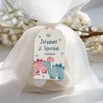 Μπομπονιέρες Βάπτισης με Τούλι & Σχέδιο Δίδυμοι Δεινόσαυροι