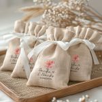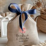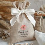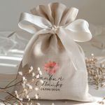 • Κάθε σετ μπομπονιέρας περιλαμβάνει ένα προσωποποιημένο πουγκί από ύφανση καμβά, με δυνατότητα επιλογής χρώματος και σχεδίου.