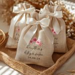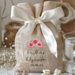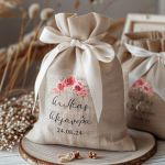• Κάθε σετ μπομπονιέρας περιλαμβάνει ένα προσωποποιημένο πουγκί από ύφανση καμβά, με δυνατότητα επιλογής χρώματος και σχεδίου.