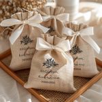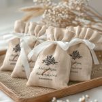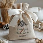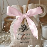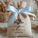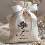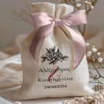 • Κάθε σετ μπομπονιέρας περιλαμβάνει ένα προσωποποιημένο πουγκί από ύφανση καμβά, με δυνατότητα επιλογής χρώματος και σχεδίου.