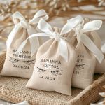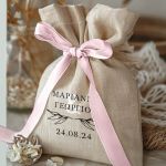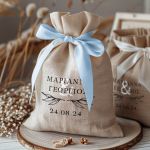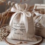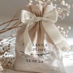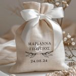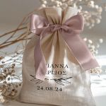 • Κάθε σετ μπομπονιέρας περιλαμβάνει ένα προσωποποιημένο πουγκί από ύφανση καμβά, με δυνατότητα επιλογής χρώματος και σχεδίου.