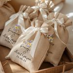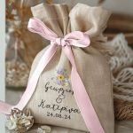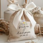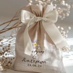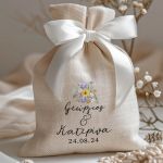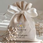 • Κάθε σετ μπομπονιέρας περιλαμβάνει ένα προσωποποιημένο πουγκί από ύφανση καμβά, με δυνατότητα επιλογής χρώματος και σχεδίου.