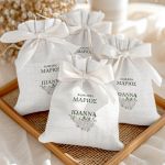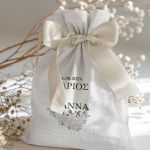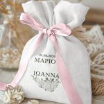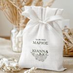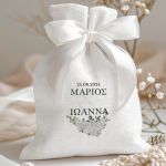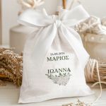 • Κάθε σετ μπομπονιέρας περιλαμβάνει ένα προσωποποιημένο πουγκί από ύφανση καμβά, με δυνατότητα επιλογής χρώματος και σχεδίου.