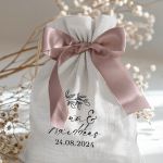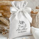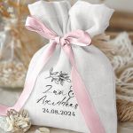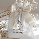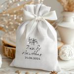 • Κάθε σετ μπομπονιέρας περιλαμβάνει ένα προσωποποιημένο πουγκί από ύφανση καμβά, με δυνατότητα επιλογής χρώματος και σχεδίου.