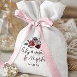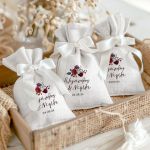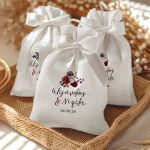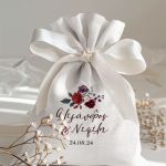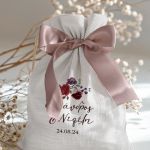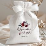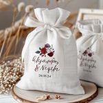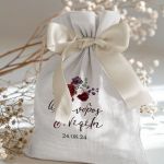 • Κάθε σετ μπομπονιέρας περιλαμβάνει ένα προσωποποιημένο πουγκί από ύφανση καμβά, με δυνατότητα επιλογής χρώματος και σχεδίου.