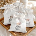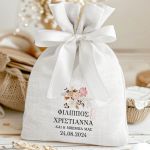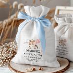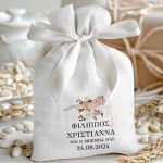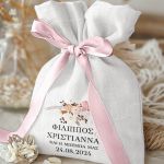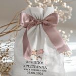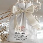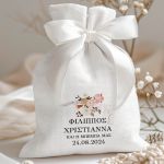 • Κάθε σετ μπομπονιέρας περιλαμβάνει ένα προσωποποιημένο πουγκί από ύφανση καμβά, με δυνατότητα επιλογής χρώματος και σχεδίου.