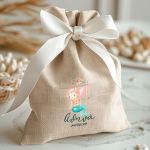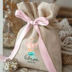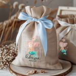 Μοντέρνες και Πρωτότυπες Μπομπονιέρες Βάπτισης με Πουγκί από Καμβά | Σετ Πουγκί, Εσωτερικό Τούλι & Κορδέλα Σατέν | Premium ποιότητα