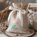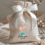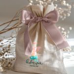 • Κάθε σετ μπομπονιέρας περιλαμβάνει ένα προσωποποιημένο πουγκί από ύφανση καμβά, με δυνατότητα επιλογής χρώματος και σχεδίου.