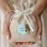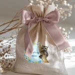 • Κάθε σετ μπομπονιέρας περιλαμβάνει ένα προσωποποιημένο πουγκί από ύφανση καμβά, με δυνατότητα επιλογής χρώματος και σχεδίου.
