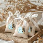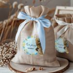 Μοντέρνες και Πρωτότυπες Μπομπονιέρες Βάπτισης με Πουγκί από Καμβά | Σετ Πουγκί, Εσωτερικό Τούλι & Κορδέλα Σατέν | Premium ποιότητα