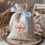 Μοντέρνες και Πρωτότυπες Μπομπονιέρες Βάπτισης με Πουγκί από Καμβά | Σετ Πουγκί, Εσωτερικό Τούλι & Κορδέλα Σατέν | Premium ποιότητα