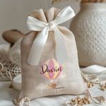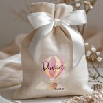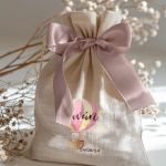 • Κάθε σετ μπομπονιέρας περιλαμβάνει ένα προσωποποιημένο πουγκί από ύφανση καμβά, με δυνατότητα επιλογής χρώματος και σχεδίου.