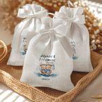 Μοντέρνες και Πρωτότυπες Μπομπονιέρες Βάπτισης με Πουγκί από Καμβά | Σετ Πουγκί, Εσωτερικό Τούλι & Κορδέλα Σατέν | Premium ποιότητα