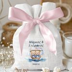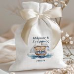 • Κάθε σετ μπομπονιέρας περιλαμβάνει ένα προσωποποιημένο πουγκί από ύφανση καμβά, με δυνατότητα επιλογής χρώματος και σχεδίου.