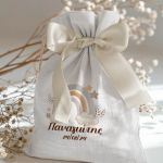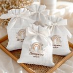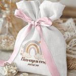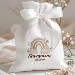 • Κάθε σετ μπομπονιέρας περιλαμβάνει ένα προσωποποιημένο πουγκί από ύφανση καμβά, με δυνατότητα επιλογής χρώματος και σχεδίου.