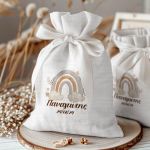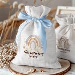 Μοντέρνες και Πρωτότυπες Μπομπονιέρες Βάπτισης με Πουγκί από Καμβά | Σετ Πουγκί, Εσωτερικό Τούλι & Κορδέλα Σατέν | Premium ποιότητα