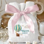 Μπομπονιέρες Βάπτισης Πουγκί σε Λευκό Χρώμα με Σχέδιο Ζωάκια στον Ουρανό