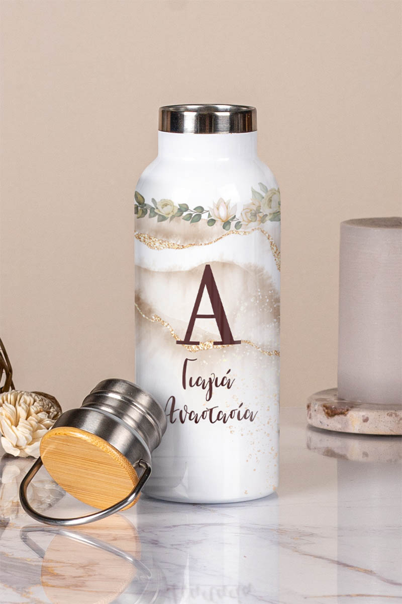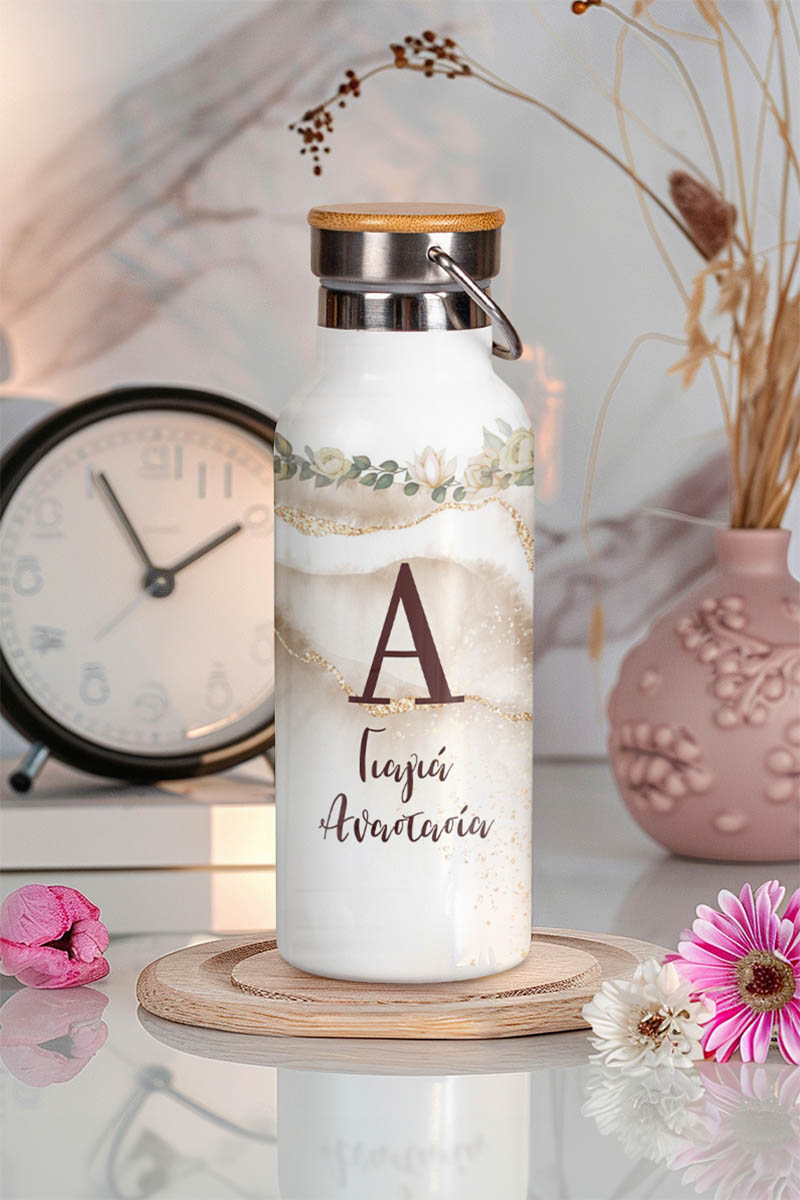 Μπουκάλι Θερμός, Ανοξείδωτo με Προσωποποίηση, Flower Sand