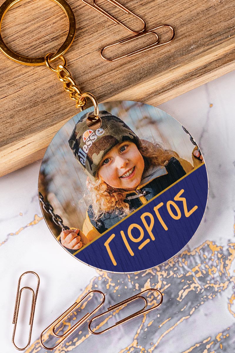Μπρελόκ Παιδικό Ξύλινο με Όνομα και Φωτογραφία, Brave Boy