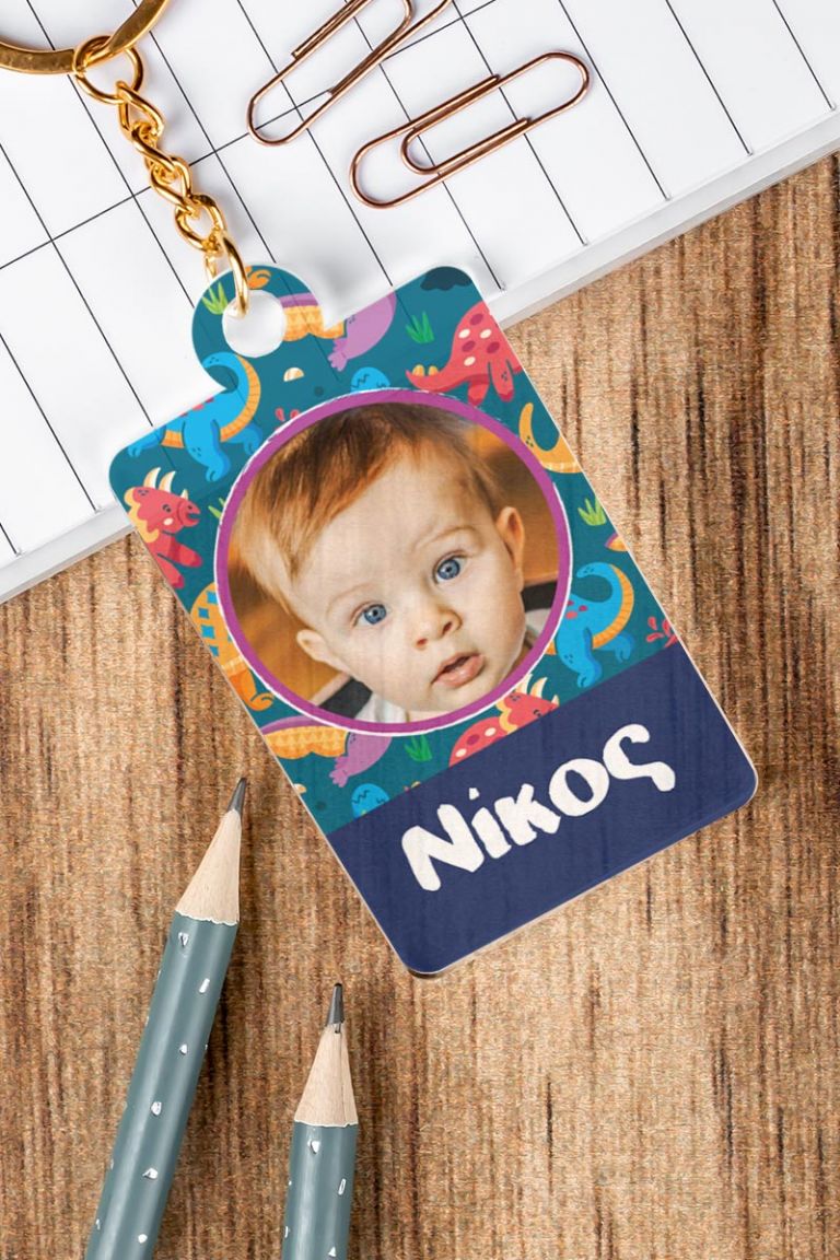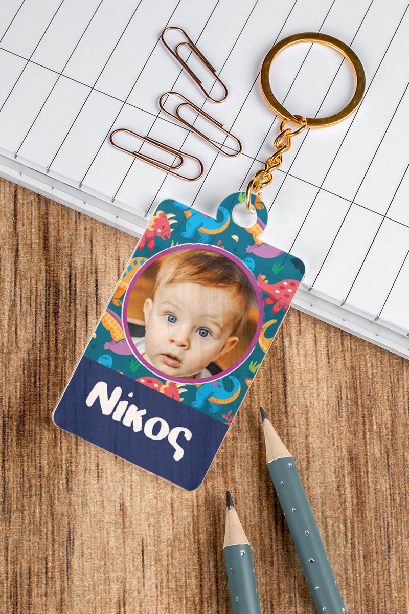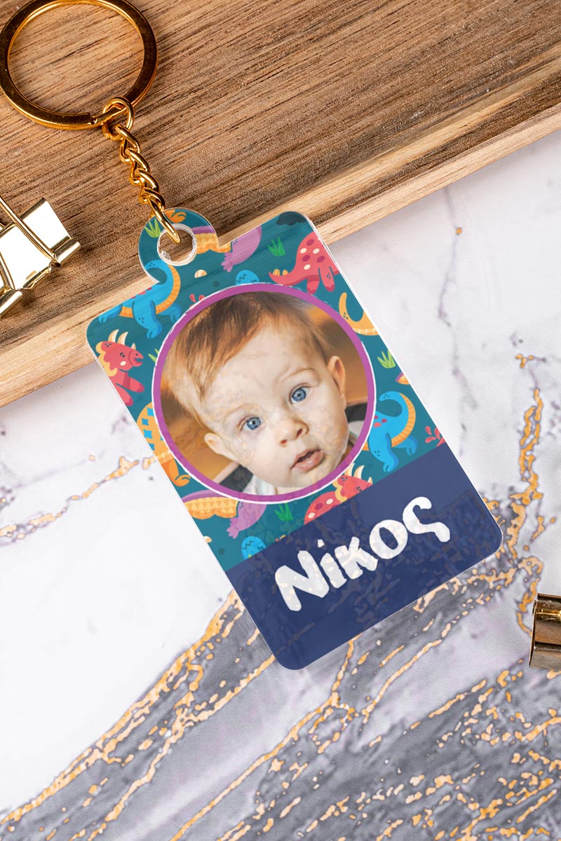 Μπρελόκ Παιδικό Plexi με Όνομα και Φωτογραφία, Cute Dino