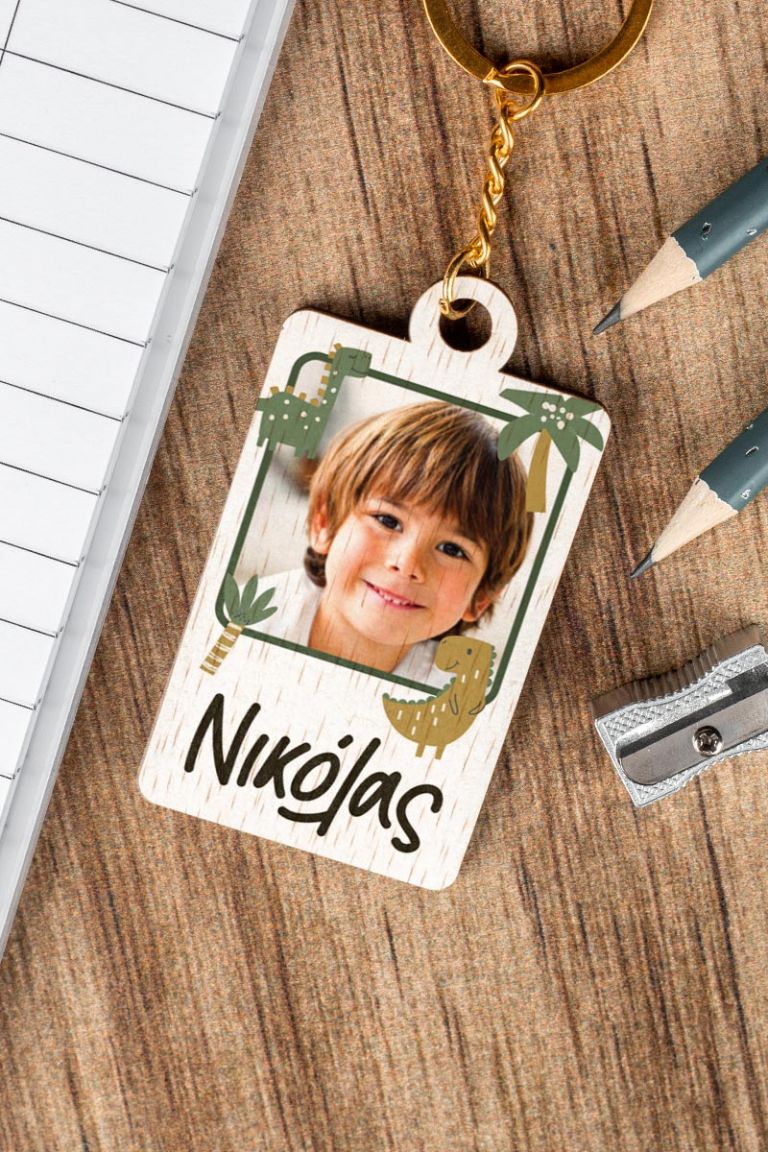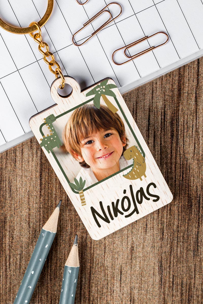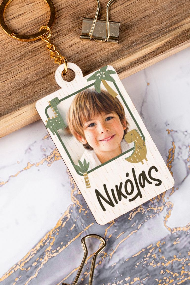Μπρελόκ Παιδικό Ξύλινο με Όνομα και Φωτογραφία, Jungle Dino